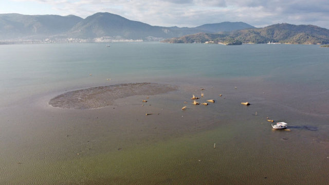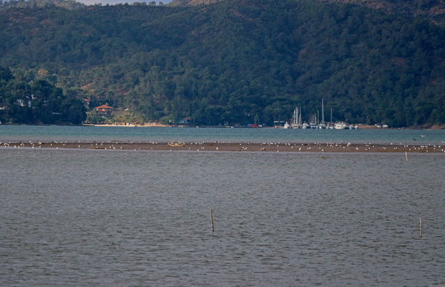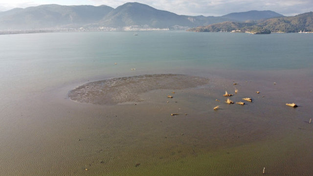 Deniz suyunun yaklaşık 10 metre çekilmesiyle, Murt Deresi'nin taşıdığı alüvyonların oluşturulduğu küçük adacık da ortaya çıktı.