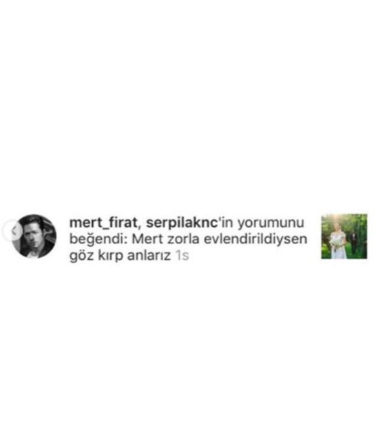 Ünlü oyuncu, bir takipçisinin yaptığı, 'Mert zorla evlendirildiysen göz kırp anlarız' yorumunu beğenince sosyal medyada olay oldu.