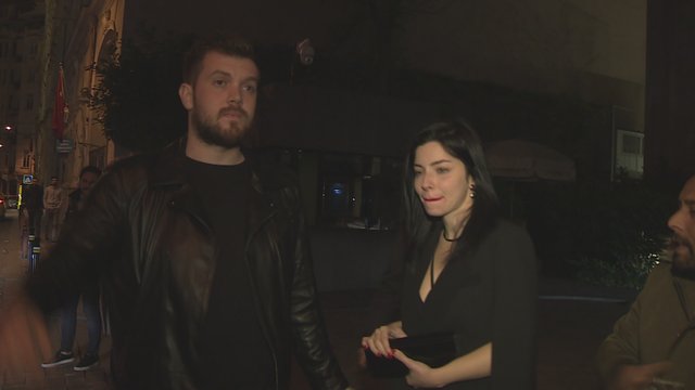 Oyuncu Merve Boluğur, önceki gece yakın arkadaşı modacı Amor Garibovic ile Asmalımescit'te bir partiye katıldı
