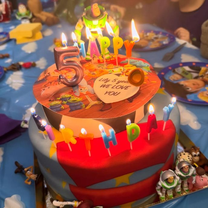 Meryem Uzerli; "Mutlu yıllar Lilly, seni çok seviyoruz" notunu düştü. Oyuncu, bazı fotoğraflarda çocuklarının yüzüne pasta emojisiyle gizledi.