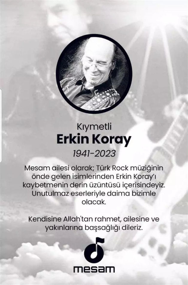 Erkin Koray, Kanada'da akciğer rahatsızlığı için tedavi gördüğü hastanede hayatını kaybetmişti. 7 Ağustos'ta vefat eden sanatçının kızı Damla Koray Çamlıca, babasıyla ilgili taziye mesajı yayınlamayan MESAM'a (Türkiye Musiki Eseri Sahipleri Meslek Birliği) sitem etmişti.