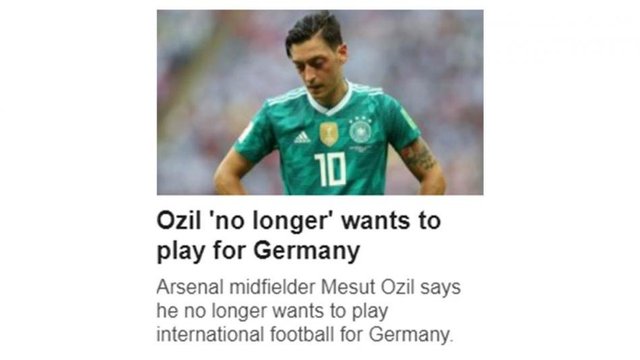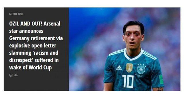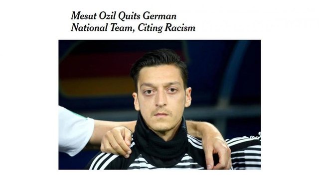 Tecrübeli futbolcunun, Cumhurbaşkanı Recep Tayyip Erdoğan ile fotoğraf çektirmesi nedeniyle eleştirilere hedef olduğunu, sahaya çıktığında ıslıklandığını yazan gazete, "Özil, 2014'te Dünya Kupası'nı, 2010'da dünya üçüncülüğünü, 2010'da 21 yaş altı takımıyla Avrupa Kupası'nı Almanya bayrağı altında kazandı. 29 yaşında ise ırkçılığa maruz kalma duygusu, Almanya renklerini savunmaya devam etmekten daha ağır bastı." yorumunu yaptı.