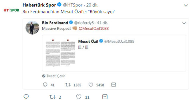 HALİL ÖZER: "Mesut kesinlikle doğru bir karar aldı. Bir ülke bu kadar vefasız olamaz. Top oynadığı ülkeye öz vatanının bir devlet büyüğü, Cumhurbaşkanı geliyor ve Mesut tabii ki kendisiyle fotoğraf çektirebilir. Bundan doğal ne var. Mesut bu noktaya geldiyse kendisine yapılan baskıları düşünün artık. Spora siyaseti Mesut değil Almanlar sokmuştur. Mesut doğru olanı yapmıştır. Ve bence Almanya Mesut’tan özür dilemelidir."