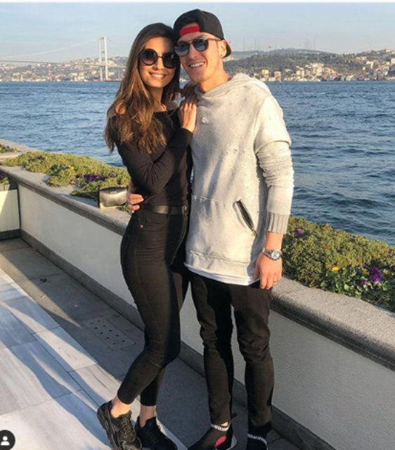 Arsenal'in Türk asıllı dünyaca ünlü futbolcusu Mesut Özil nişanlısı Amine Gülşe'nin doğum gününü kutladı