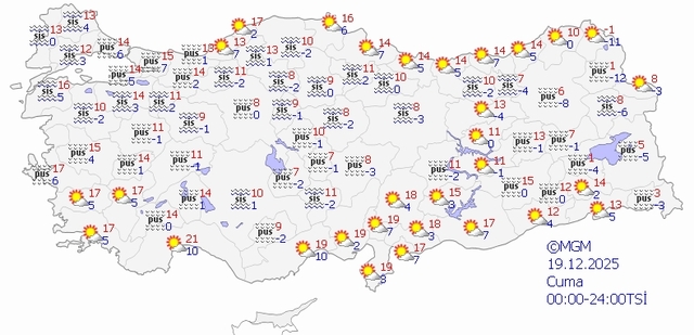 Meteoroloji Genel Müdürlüğü 19 Aralık Cuma gününe ilişkin hava durumu raporunu paylaştı. Yurt genelinde yağış beklenmezken, parçalı bulutlu puslu bir havanın etkili olması bekleniyor. Peki, "Bugün hava nasıl olacak?" İşte 19 Aralık Cuma MGM ile İstanbul, Ankara, İzmir hava durumu tahminleri...