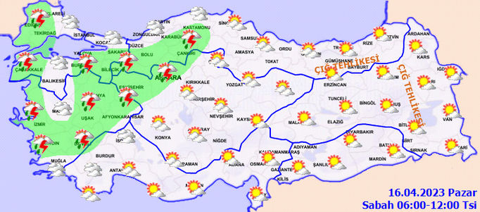 Meteoroloji'den yapılan açıklamaya bugün Marmara, Ege, Karadeniz, Akdeniz ve İç Anadolu bölgelerinde sağanak ve gök gürültülü sağanak yağış bekleniyor. Öte yandan Doğu Karadeniz ile Doğu Anadolu bölgelerinde ise çığ tehlikesi bulunuyor.