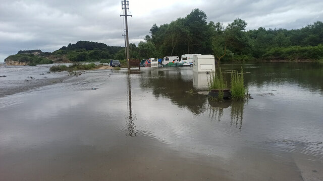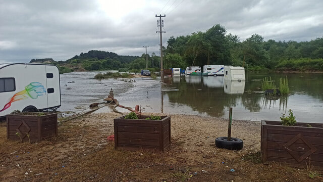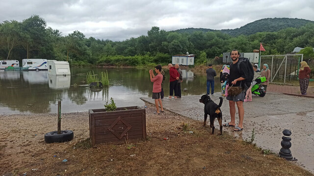 Sağanak nedeniyle Doğancılı Mahallesi'nde kamp yapan tatilciler zor anlar yaşadı. Sarısu Deresi'nin taşması sonucu kamp alanındaki çadırları su basarken, vatandaşlar karavanlarda mahsur kaldı.
