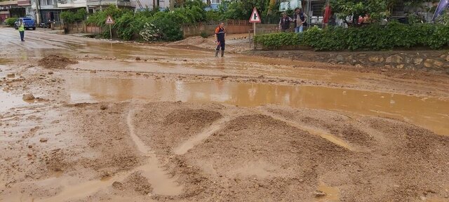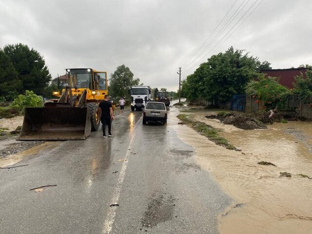 Belediye ekipleri, sokaklarda sel nedeniyle tıkanan kanalları kepçe yardımıyla açmaya çalıştı. Jandarma ekipleri ise çevrede güvenlik önlemi aldı.