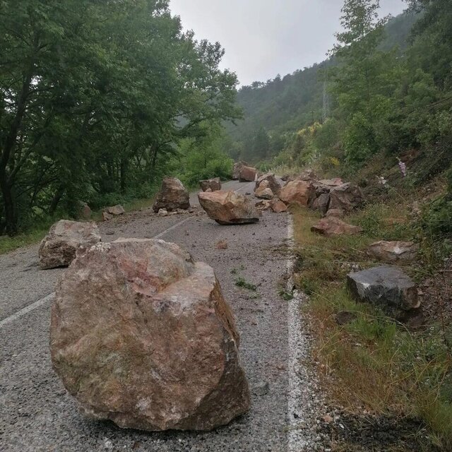 Tavşanlı-Çavdarhisar kara yolunun 20. kilometresinde, sağanak nedeniyle çok sayıda kaya parçası yamaçtan koparak yola düştü. Dev kayalar nedeniyle kara yolu bir süre ulaşıma kapandı