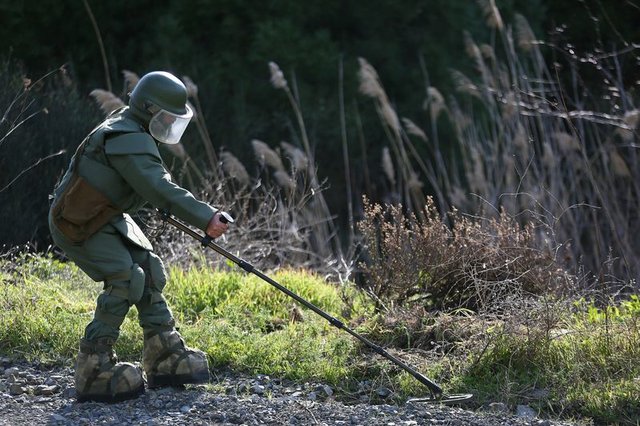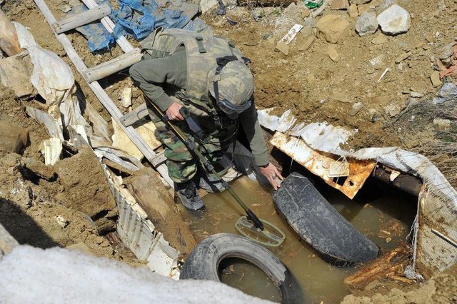 Afrin Harekatı'nda hakimiyet sağlanan yerlerdeki patlayıcıları TSK'nın tuzaklamalara karşı eğitilmiş Mayın ve El Yapımı Patlayıcı Tespit İmha Timi (METİ) ortadan kaldırıyor.