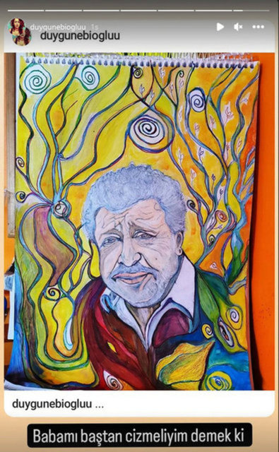 Duygu Nebioğlu daha önce de 2019'un ocak ayında babası Metin Akpınar'ın bir resmini çizmiş; "Babamı baştan çizmeliyim demek ki" ifadelerini kullanmıştı.