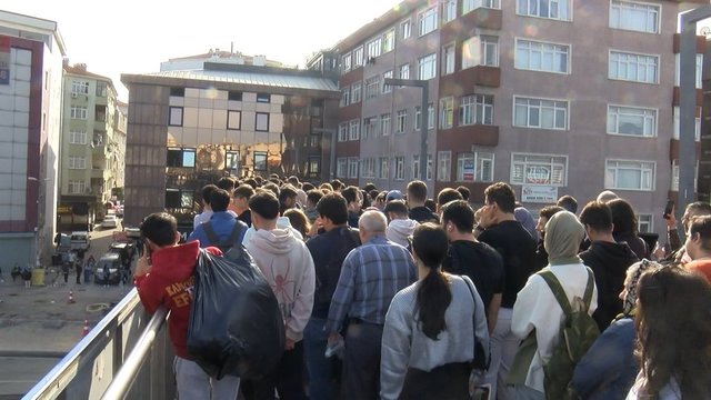 İstanbul'da bu sabah metrobüs duraklarında inanılmaz bir yoğunluk yaşandı. Megakentin birçok noktasında kaydedilen görüntülerde vatandaşların araçlara binmek için uzun kuyruklar oluşturduğu görüldü. Üst geçitlerde başlayan yoğunluk kameralara yansıdı