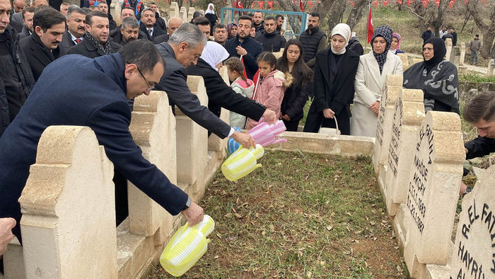 Törende Kur'an-ı Kerim okundu, dualar edildi. Daha sonra Vali Akkoyun ve Kaymakam Özdemir, şehit mezarlarını suladı, çiçekler bıraktı. Mezarlıktaki törenin ardından anıtlaştırılan ev ziyaret edildi.