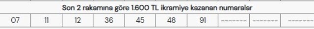 MİLLİ PİYANGO 1.600 TL KAZANAN NUMARALAR
