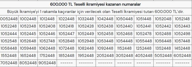 Milli Piyango yılbaşı çekilişinde 600 Bin TL teselli ikramiyesi kazandıran numaralar belli oldu!