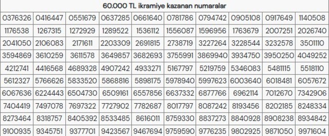 MİLLİ PİYANGO 60 BİN TL KAZANAN NUMARALAR