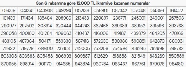 MİLLİ PİYANGO 12 BİN TL KAZANAN NUMARALAR