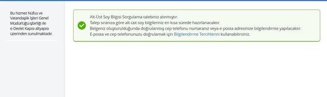 Bu mesaj geldikten sonra e-Devlet sisteminde soy bilgisi raporunuzu görüntüleyebilirsiniz.