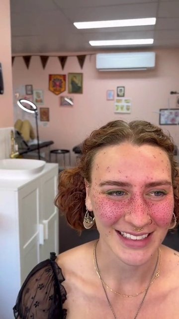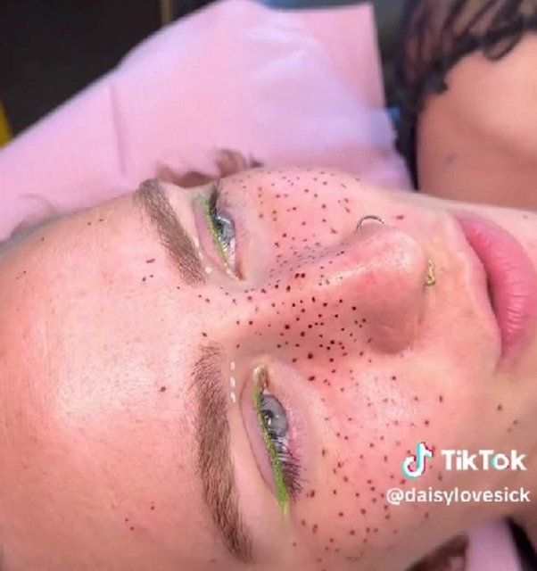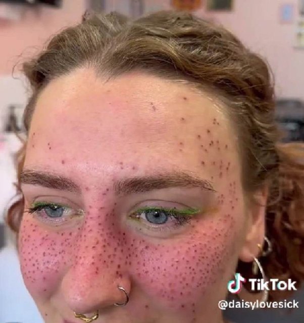 Daisy Foxglove da, müşterilerinin yüzlerini kalıcı çillerle kaplayıp süreci TikTok hesabından paylaşıyor. Dövme sanatçısı, çalışmalarının öncesi ve sonrasıyla ilgili videolar yayınlıyor.