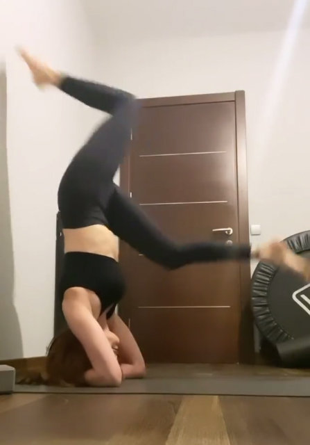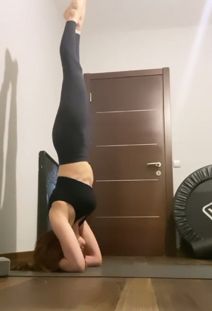 Evdeki çalışmalarını aksattığını ifade eden oyuncu, amuda kalktığı anları sosyal medya hesabından yayınladı.