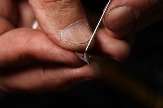 44 numarayla başlayıp 2 milimetreye kadar küçülttüğü ve iğne ucuyla yaptığı minyatür ayakkabı tasarımları görenleri şaşırtıyor.