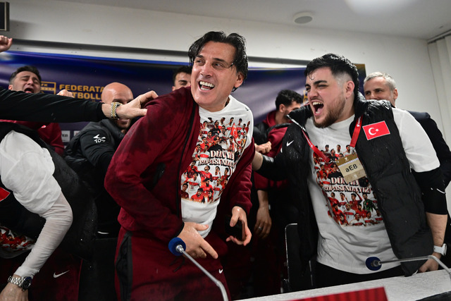 İtalyan teknik adam, burada futbolcularla birlikte büyük bir coşku yaşarken birlikte 'Türkiye' tezahüratları yapıldı.