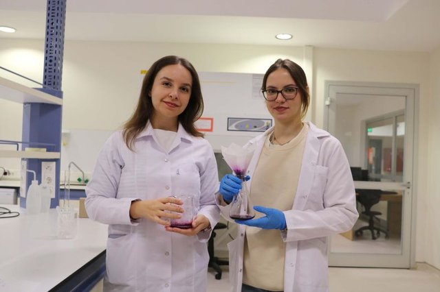 TÜBİTAK'ın da 900 bin liralık destek sağladığı projeyi 12 ay içinde tamamlayacaklarını belirten Geçkin, "Günlük hayatta neredeyse her evin mutfağında bulunan doğal maddelerdeki pigmentleri nasıl özütleyebileceğimizi düşünerek bir çalışma başlattık. Çalışma için uzun ömürlü ve pigment içeriği yüksek olan mor lahanayı kullandık. Şu an yanak ve dudak renklendirmek için allık, ruj ürünleri elde etmeyi amaçlıyoruz" dedi.