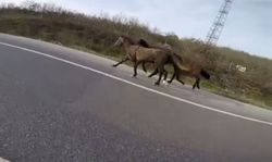 İstanbul Şile otoyolunda ilerleyen motosikletlilerin kask kamerasına ilginç bir görüntü yansıdı. Otoyolda seyir halinde olan motosikletli grubun önüne yol üzerinde koşan üç at çıktı. Başıboş şekilde koşan atlarla karşılaşan motosikletliler bir anda neye uğradığını şaşırdı. Daha sonra atları yoldan çekmek isteyen motosikletliler, atların yanına ve önüne geçerek hayvanları kontrol altına almaya çalıştı.
