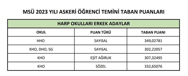 2024 MSÜ kadın ve erkek Kara, Hava, Deniz Harp Okulu taban ve tavan puanları