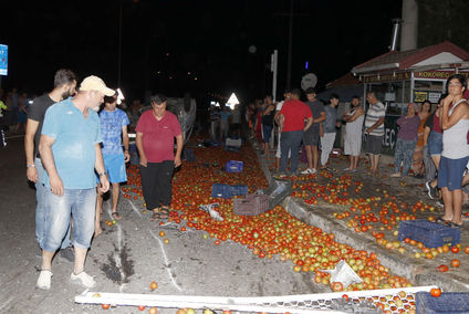 Kara yoluna saçılan domates ve kasalar nedeniyle ulaşım kontrollü sağlandı.