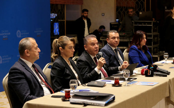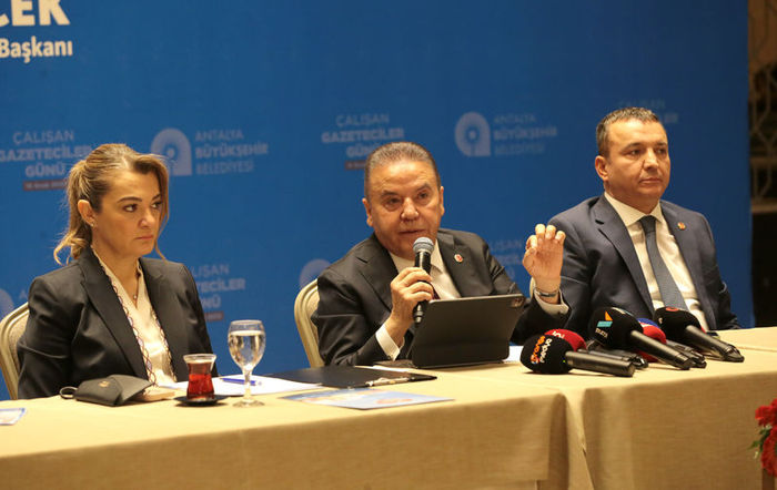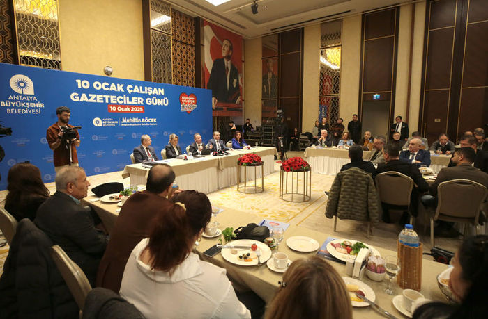 Antalya Büyükşehir Belediye Başkanı Muhittin Böcek, 10 Ocak Çalışan Gazeteciler Günü dolayısıyla Antalya Gazeteciler Cemiyeti işbirliğinde kent merkezindeki bir otelde basın mensuplarıyla bir araya geldi.