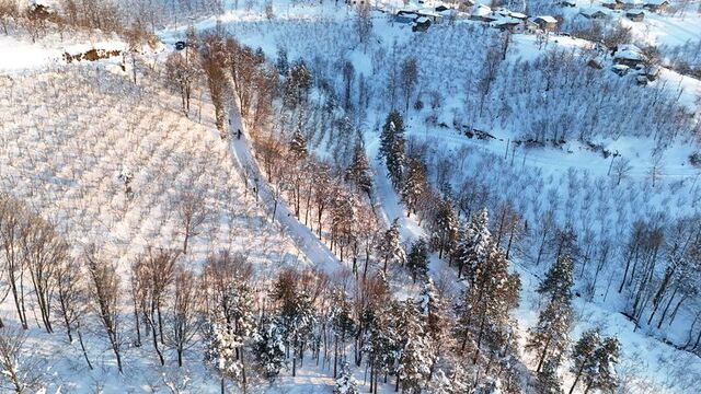 Muhtar Mehmet Çiçek, traktörüne bağladığı kürekle köyün patika yollarında biriken karı temizlerken, zamanlarının büyük bölümünü evlerinde televizyon, tablet ve akıllı telefon başında geçiren çocuklar için kızak pisti oluşturmaya karar verdi.