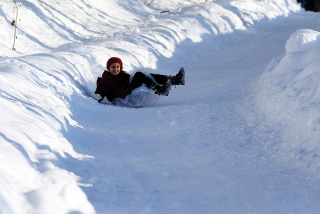 Kızak pistinde annesiyle gelen 6 yaşındaki Ömer Ayaz, çok eğlendiğini dile getirerek, "Poşetin önünü kaldırıyorum. Daha sonra geriye doğru yatarak ayaklarımı da kaldırıp kayıyorum, çok zevkli" dedi.
