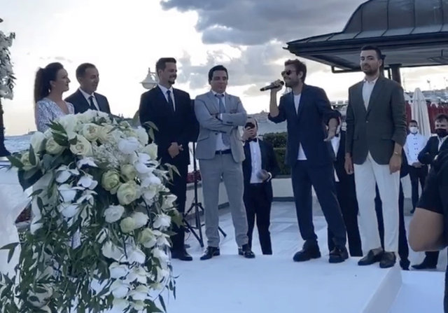 Murat Dalkılıç, nikah töreni sonrası çift için şarkı söyledi.