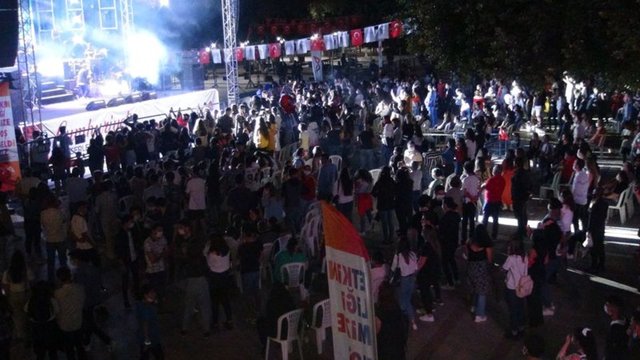 Konserde sosyal mesafe ve maske kuralına uyulmadığı görüldü. Konserde eğlenen vatandaşlar, tüm uyarılara rağmen maske ve sosyal mesafe kuralını unutarak konseri izledi.