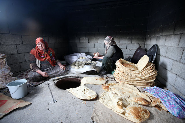 Muş'ta köylerde yaşayan kadınlar, Kahramanmaraş merkezli 10 ili etkileyen 7,7 ve 7,6 büyüklüğündeki depremde mağdur olan vatandaşlar için tandır ekmeği pişirdi