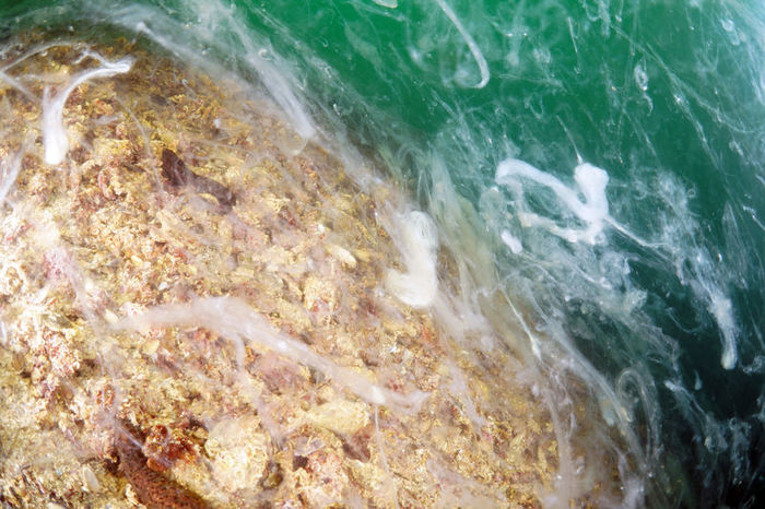 Kocaeli'nin Gölcük ilçesi Değirmendere'de, su üstünden görünmeyen müsilajın sualtındaki yayılımı kaydedildi