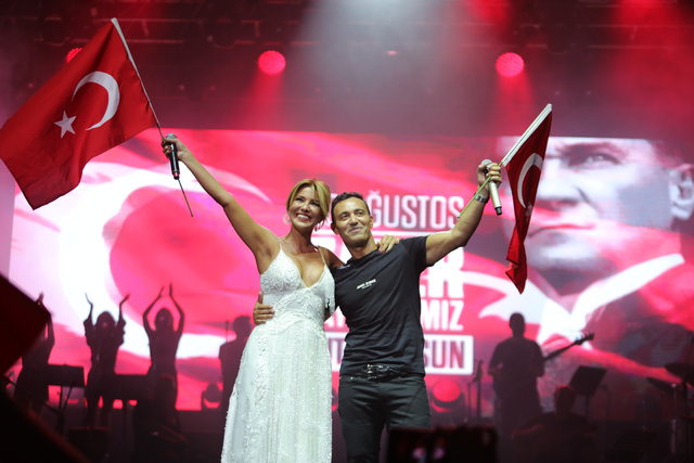 30 Ağustos Zafer Bayramını bir gün öncesinden kutlayan ikili, Türk bayraklarıyla Harbiye’yi kırmızı-beyaza boyadı.