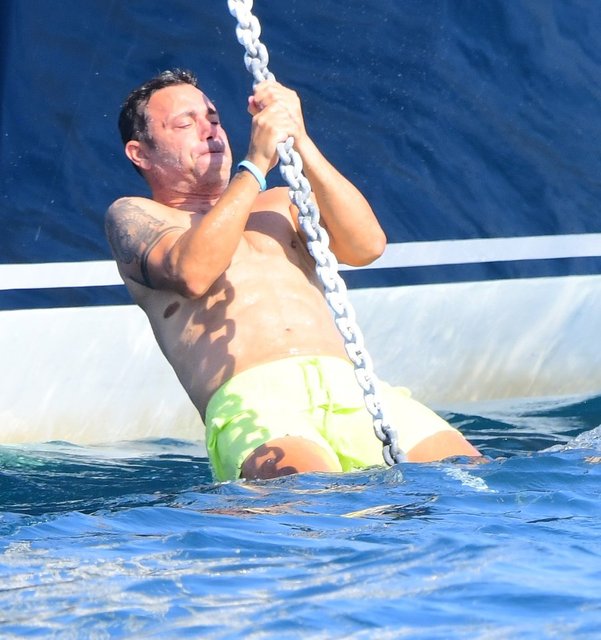 Sandal, daha sonra denize girip teknenin halatlarına tutunarak barfiks çekti.