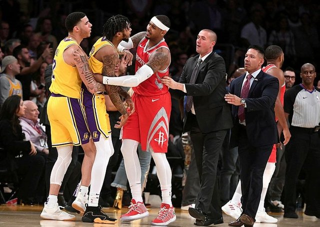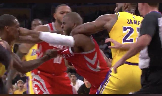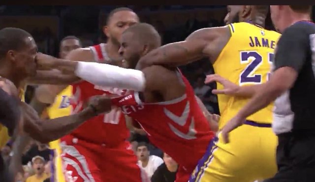 NBA'de gecenin maçında LeBron James'li Los Angeles Lakers ile James Harden'lı Houston Rockets maçında çıkan büyük kavga her şeyi gölgede bıraktı! Rajon Rondo ile Chris Paul birbirine girdi