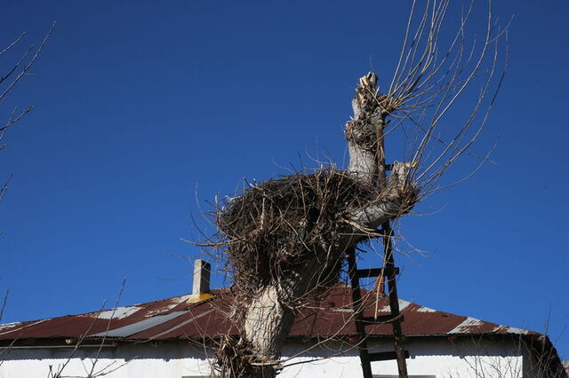 Avşar, evinin yakınında bulunan söğüt ağacındaki leylek yuvasının bakımını her yıl yaptığını söyledi.