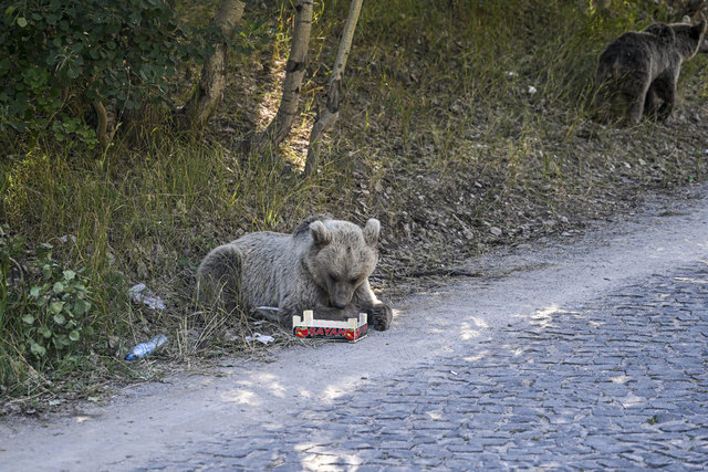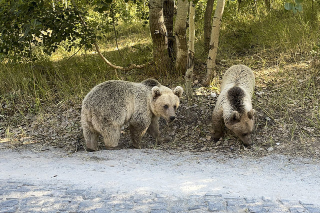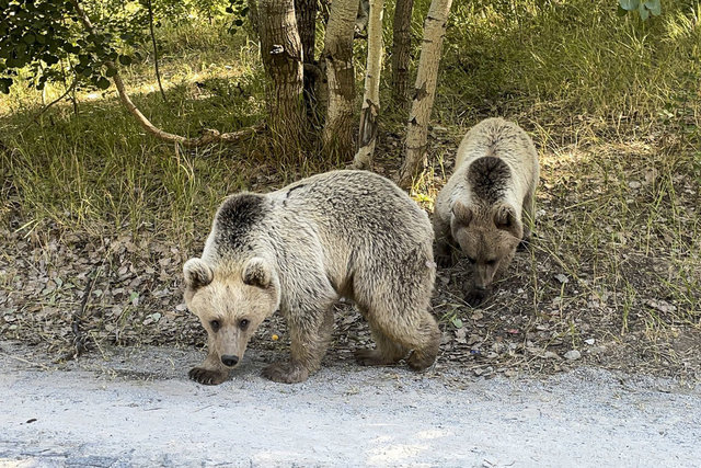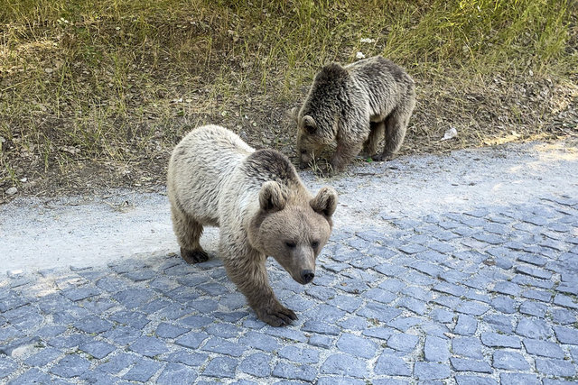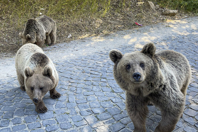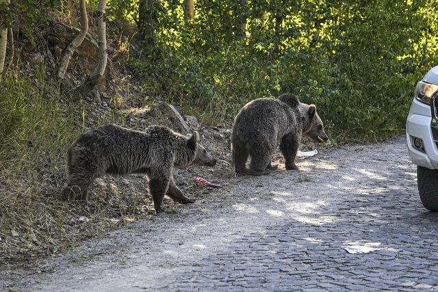 Krater gölüne giden yolda bir grup boz ayı gören ziyaretçiler, araçlarını durdurarak görüntü aldı. Bazı ziyaretçilerin ayılara yiyecek attıkları görüldü.