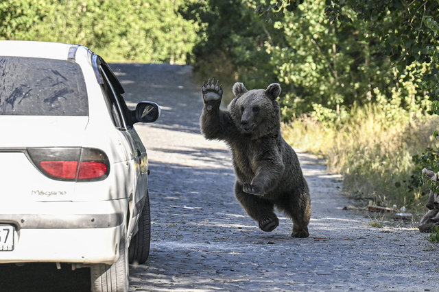 Hafta sonu için Nemrut Kalderası'nı tercih eden ziyaretçiler, boz ayılarla karşılaşmanın heyecanını yaşadı.