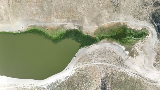 Gölün bir kısmı kururken, havadan drone ile çekilen görüntüler su seviyesindeki düşüşü gözler önünü serdi.