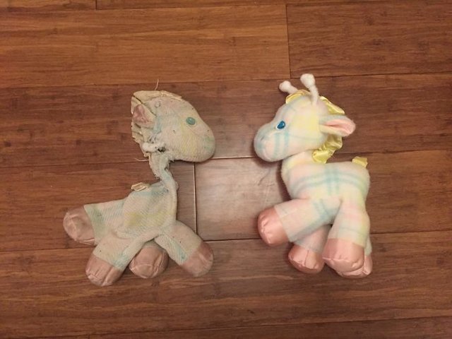 Yeni olanla 33 yıl öncesine uzanana peluş oyuncak.