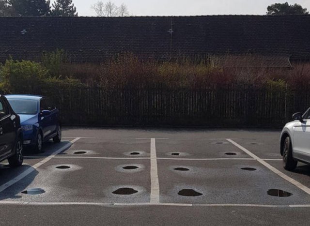 Su birikintileri, tekerleklerin düştüğü noktaları belirginleştiriyor.