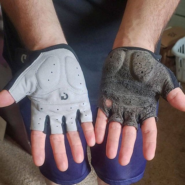 Bisikletle yüzlerce kilometre yaptıktan sonra eskiyen eldiven...