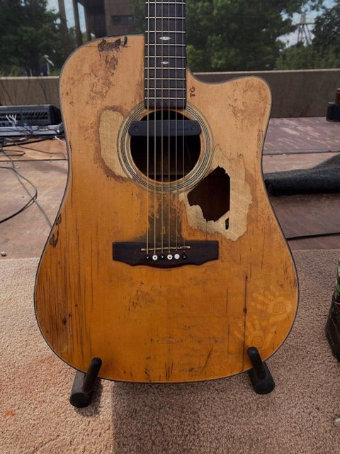 15 yıl boyunca kullanılan gitar böyle aşınmış.