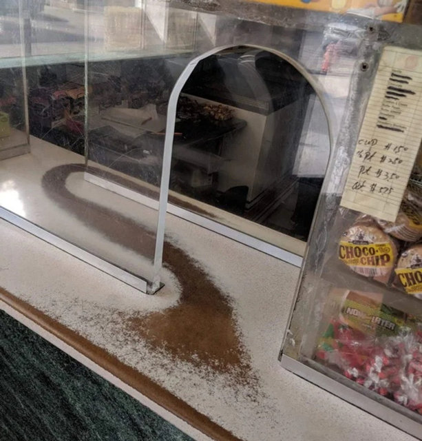 Duvarlardaki karartıları fark ettiniz mi? Eski bir kahve dükkanında müşterilerin oturduğu yerler zamanla kararmış.