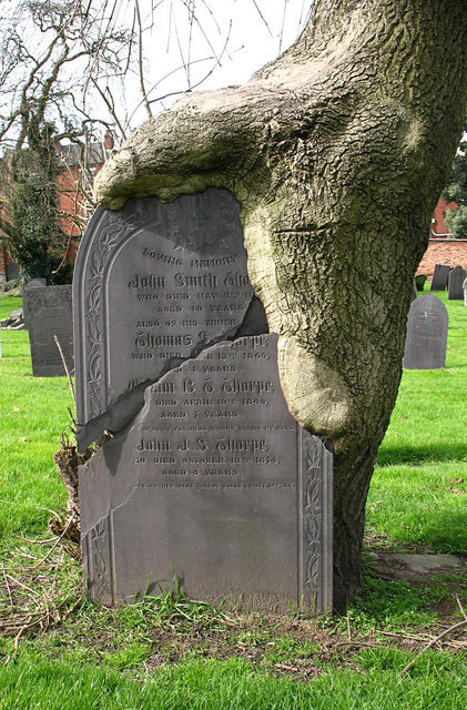Yıllar içinde bir bütün haline gelen ağaç ve mezar taşı...
